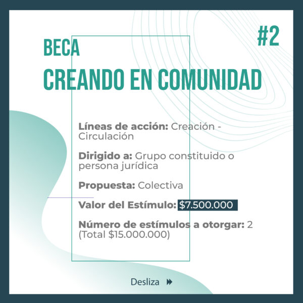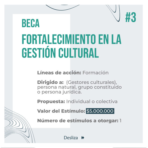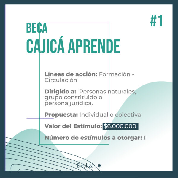 “El Portafolio Municipal de Estímulos CAJICARTE 2025 busca fomentar la creación, formación, circulación e investigación artística y cultural en el municipio de Cajicá. Este programa se fundamenta en la importancia de proteger y promover la diversidad cultural y artística de la región con el objetivo de garantizar la transparencia y la equidad en la selección de los beneficiarios de los estímulos.”