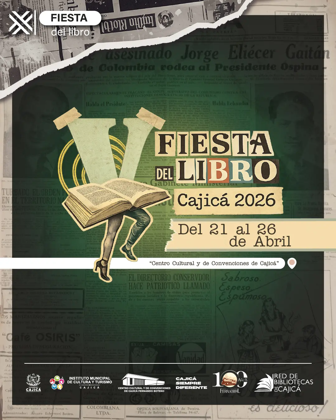 V Fiesta del Libro de Cajicá 2026 00días 00horas 00minutos 00segundosHorarios De AtenciónLunes A Jueves 8:00 A.M – 12:30 A.M 2:00 P.M – 5:30 P.M Viernes 8:00 A.M – 12:30 A.M 2:00 P.M – 4:00 P.M